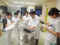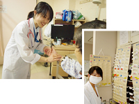 薬剤師の業務としては、チーム医療の一員として他職種との連携をとりながら、病棟業務を中心に活動しています。また癌化学療法、感染対策、安全対策、栄養サポートチームなど、それぞれ得意の分野を生かして活躍しています。